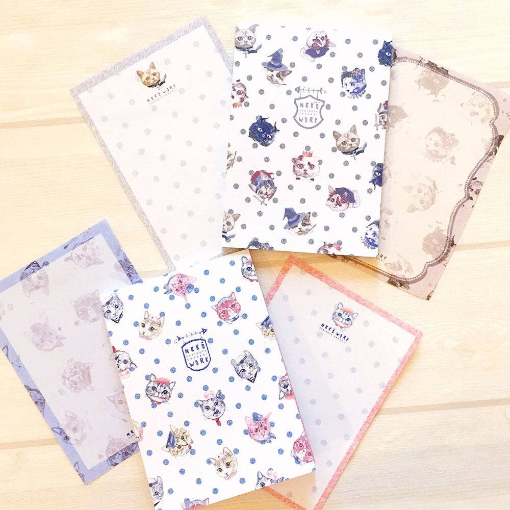 リトグラフタッチで描かれたネコたちとドット柄がおしゃれなメモパッド。