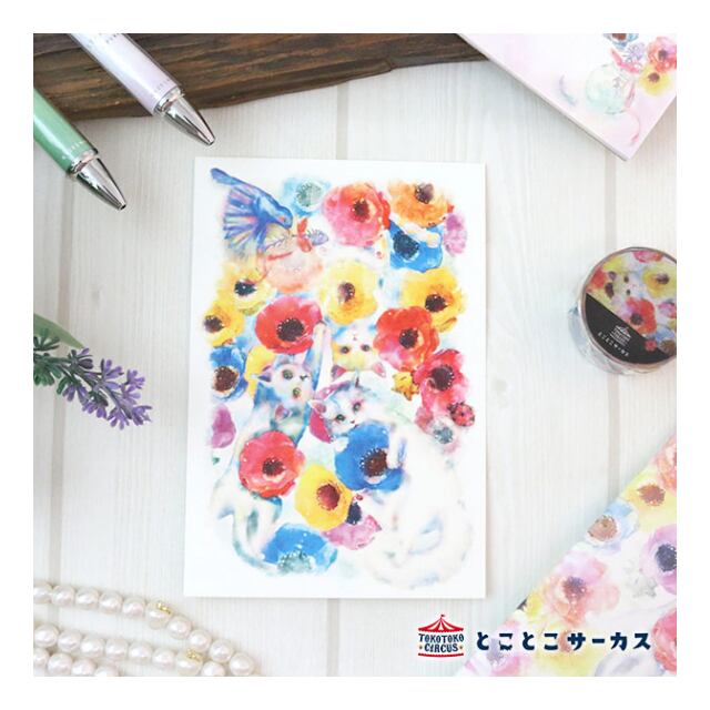 ネコたちの不思議な日常を描いた絵日記「kyou wa donna hi?」シリーズのポストカードです。